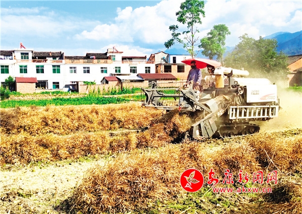 為支持農(nóng)戶實現(xiàn)夏糧豐收,力保油菜籽顆粒歸倉,該鎮(zhèn)協(xié)調(diào)30余臺收割機投入油菜收割。4臺收割機正穿梭于五一村三組的油菜地里,收割、脫粒、秸稈還田,整個收割過程一氣呵成?粗约3畝的油菜地在半小時內(nèi)就完成收割,村民成芳難掩心中的喜悅。H9H安康新聞網(wǎng)