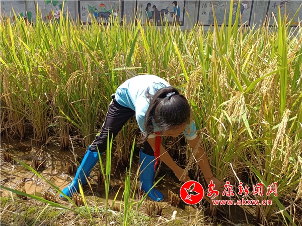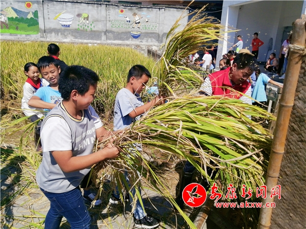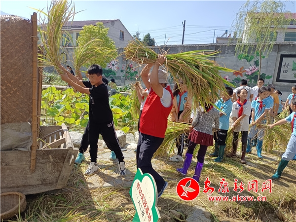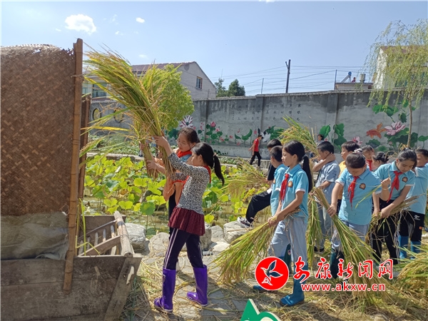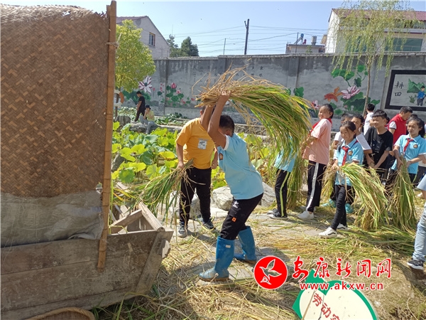 “同學(xué)們,你們看那一串串飽滿的稻穗掛在枝頭,長得多喜人吶!現(xiàn)在我們要去收獲自己辛勤耕耘的勞動(dòng)果實(shí)了!大家要認(rèn)真學(xué)習(xí)怎樣割稻子,打稻谷,聽從指揮,注意安全……”“老師,我要參與,我不怕累。”“我去年就學(xué)會(huì)了割稻子,今年我要學(xué)會(huì)打稻谷!”“我在電視上見過,這個(gè)打谷子的工具歷史可悠久了。”