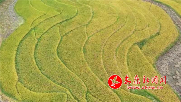 從空中俯瞰,在漫漫云海的覆蓋下,綿延數(shù)十公里的古梯田,層層環(huán)抱著山脊,從山腳盤(pán)繞到山頂,其線條如行云流水,其規(guī)模磅礴壯觀,與青山相互交融,盡顯自然和諧。走在田間的小道上,稻香撲面而來(lái),粒粒飽滿的稻穗隨風(fēng)搖曳,村民們正搶抓晴好天氣,忙著收割、打粒、裝袋。放眼望去,金黃的稻田、翠綠的山巒和勤勞的村民勾勒出一幅優(yōu)美的豐收畫(huà)卷。