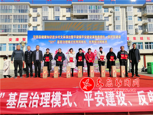 本網(wǎng)訊(通訊員 歐定揚(yáng) 鄧麗 張成軍)12月2日,漢陰縣舉行衛(wèi)生健康知識(shí)宣講和文藝巡演進(jìn)鄉(xiāng)村暨平梁鎮(zhèn)321基層治理模式優(yōu)秀網(wǎng)格長、優(yōu)秀綜治網(wǎng)格員表彰大會(huì)。普及衛(wèi)生健康知識(shí),全面提升城鄉(xiāng)廣大人民群眾的健康水平