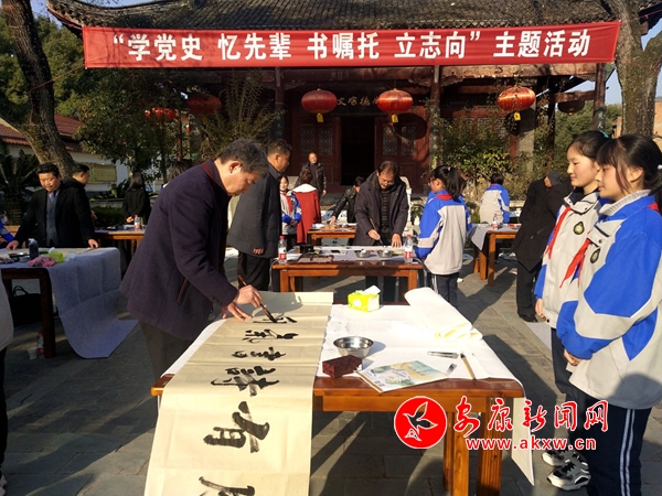 本網(wǎng)訊(通訊員 蘭本波 )為傳承紅色精神,賡續(xù)百年初心,進(jìn)一步弘揚(yáng)中華優(yōu)秀傳統(tǒng)文化,引導(dǎo)廣大師生感受漢字和書法的魅力,12月9日,在“一二·九”運(yùn)動86周年紀(jì)念日當(dāng)天,漢陰縣8位本土?xí)易哌M(jìn)漢陰縣初級中學(xué),開展以“學(xué)黨史 憶先輩 書囑托 立志向”為主題的書法家進(jìn)校園活動。
