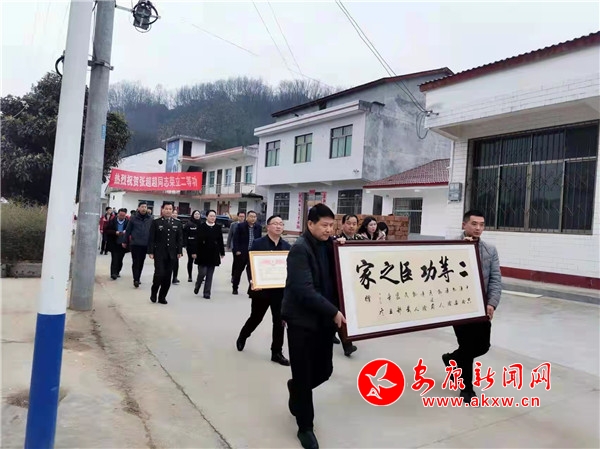 本網(wǎng)訊(通訊員 黃鴻)愛國奉獻在軍營,立功喜報穿家鄉(xiāng)。12月15日,伴隨著歡快喜慶的鑼鼓聲,漢陰縣委書記劉飛霞、縣人武部長吳杰、縣退役軍人事務局長王衛(wèi)等一行在雙乳鎮(zhèn)黨委、政府領導陪同下,為漢陰縣雙乳鎮(zhèn)南窯村榮立二等功的張超超家屬送去“二等功”牌匾、喜報和慰問金。