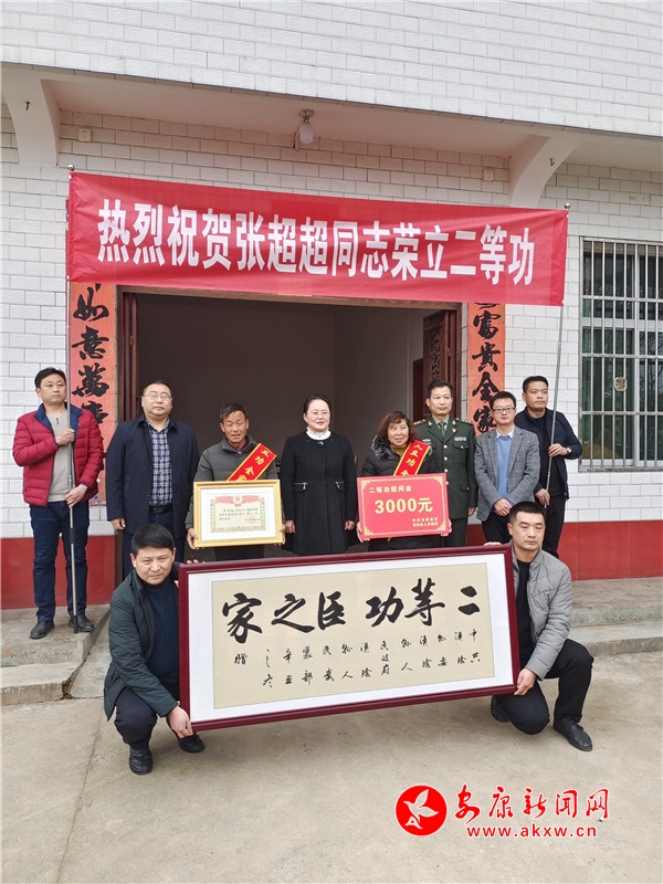 在張超超家中,縣委書記劉飛霞、縣人武部長吳杰等為張超超的父母佩戴了“一人立功,全家光榮”綬帶,送上“二等功臣之家”牌匾和慰問金,并代表縣委、縣政府向其父母表示祝賀,感謝他們?yōu)樽鎳囵B(yǎng)人才、為家鄉(xiāng)增光添彩,希望他們一如既往地支持張超超在部隊工作,爭取更好成績,同時要求縣鎮(zhèn)村要在生產(chǎn)生活中給予必要的關(guān)心和幫助。
