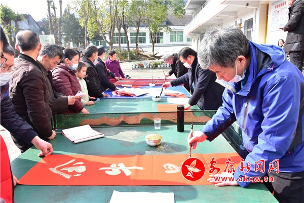 為積極配合疫情防控工作要求,村干部通知村民們戴口罩分批次陸續(xù)前來挑選春聯(lián),村民們一邊欣賞書法創(chuàng)作,一邊品評(píng)春聯(lián)內(nèi)容、寓意,有序挑選心儀的春聯(lián)。