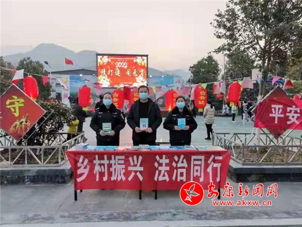 按傳統(tǒng)習俗,過完元宵佳節(jié)年就過完了,外出務工返鄉(xiāng)的群眾將會開啟新一年的務工歷程。該鎮(zhèn)抓住三元村鄉(xiāng)村文化理事會組織的元宵燈謎晚會活動的有利時機,在戲曲開場前,登臺向群眾宣傳《民法典》、《法律援助法》、《家庭教育促進法》;設立宣傳臺,把《民法典》、《農(nóng)村法律實用手冊》、平安建設、掃黑除惡、全民反詐等宣傳資料發(fā)送到群眾手中;對前來咨詢的群眾耐心解答群眾疑惑。該次普法宣傳,共計開展普法宣講一次,發(fā)放宣傳資料300余份,解答群眾咨詢6人次。