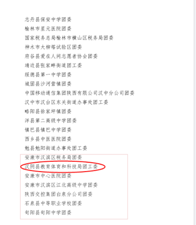 本網(wǎng)訊(通訊員 林愛銘)近日,共青團(tuán)陜西省委表彰了2020—2021年度“陜西省優(yōu)秀共青團(tuán)員”“陜西省優(yōu)秀共青團(tuán)干部”“陜西省五四紅旗團(tuán)支部”“陜西省五四紅旗團(tuán)委”,漢陰縣教育體育和科技局團(tuán)工委榜上有名,榮獲“陜西省五四紅旗團(tuán)委”榮譽(yù)稱號。