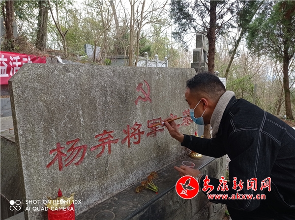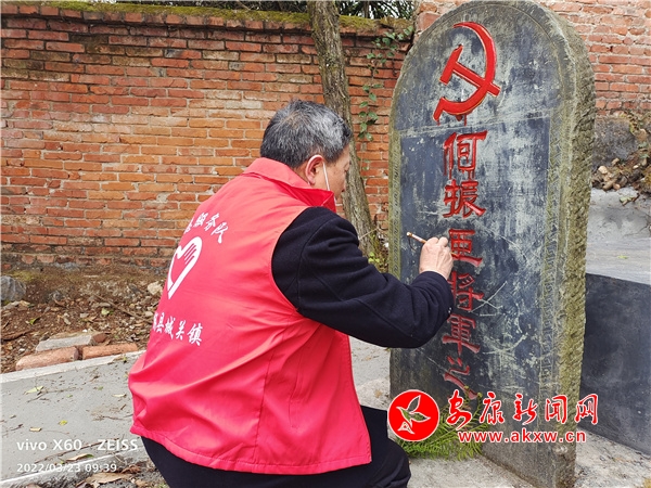 活動現(xiàn)場,該鎮(zhèn)10余名書法志愿者們向烈士鞠躬后,便小心翼翼地把墓碑上面的灰塵刷去,開始嚴肅認真地一筆一劃為烈士墓碑描摹碑文。每一筆,都刻畫了志愿者們對先烈們的沉痛追思;每一畫,都描摹著對新生活的無限感激。經過3個多小時的努力,40余座革命烈士墓碑的字跡煥然一新,在陽光的照耀下,顯得格外清新醒目,志愿者們露出了欣慰的表情。