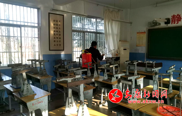 王懷軍為學(xué)生活動(dòng)場(chǎng)所消毒 劉彩霞 攝