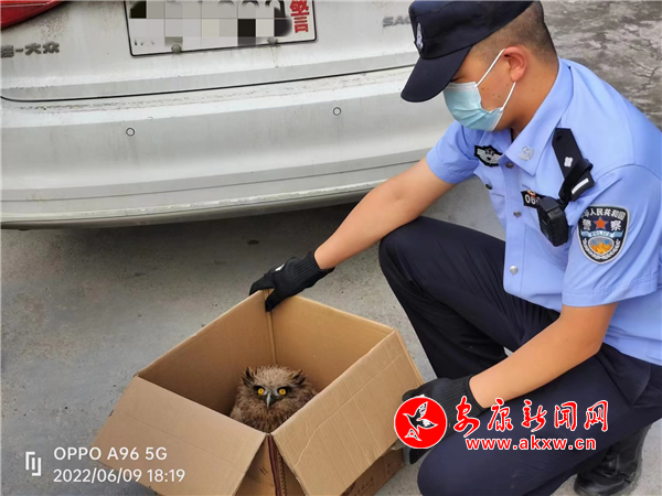 本網(wǎng)訊(通訊員 高博)6月8日,漩渦派出所接到群眾李某報(bào)警稱在路邊撿到一只類似貓頭鷹的動(dòng)物,在將其帶至家中后出現(xiàn)不進(jìn)食的情況,請求幫助。