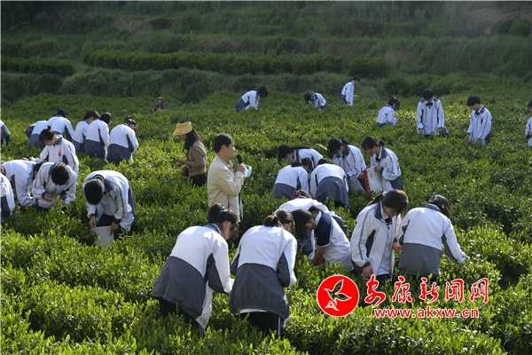 推廣“田間課堂”,將勞動教育實踐路徑延伸到鄉(xiāng)村田間。城關鎮(zhèn)三元村茶園是漢陰中學校外勞動教育實踐基地,4月8日清晨,茶園基地迎來了一群特殊的“采茶人”,正是漢陰中學師生代表們挎著采茶裝備,穿梭在茶園間,指尖輕捻、摘取嫩芽,頓時打破了茶園清晨的寧靜。