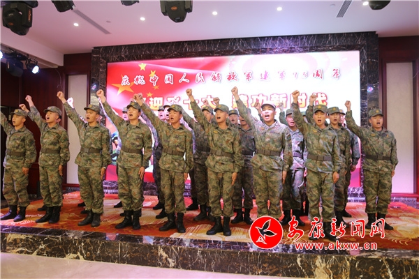 活動中并有軍人們自創(chuàng)、自導(dǎo)、自演的擒敵拳、詩朗誦等10多個(gè)精彩節(jié)目。老兵、新兵在一起激情澎湃的同唱《中國人民解放軍軍歌》,共敘軍人情懷,共話魚水深情,暢談夢想和作為,將為民服務(wù)的思想和軍人精神凝成堅(jiān)不可摧的精神志向,一起傳承愛國愛民的紅色基因。