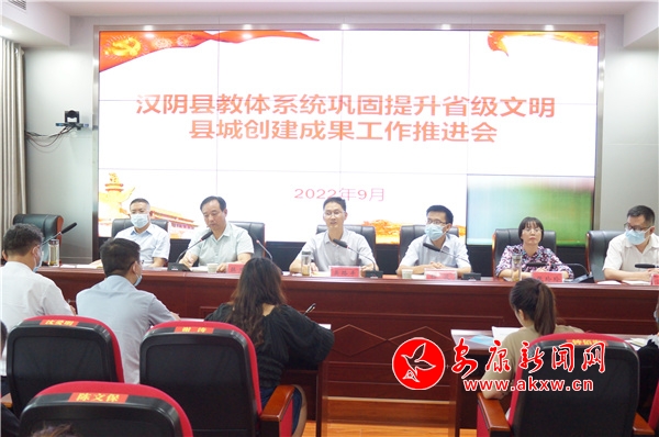 本網(wǎng)訊(通訊員 汪付艷)9月16日,漢陰縣教體科技局召開鞏固提升省級文明縣城創(chuàng)建成果工作推進(jìn)會(huì),對鞏固提升省級文明縣城創(chuàng)建成果工作再部署、再推進(jìn),進(jìn)一步統(tǒng)一思想、提高認(rèn)識(shí)、夯實(shí)責(zé)任。