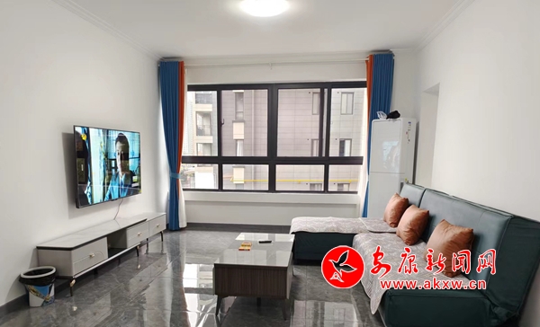 走進老郭130多平方米的新房內(nèi),寬敞明亮的客廳,65英寸的液晶電視正播放著電視劇《幸福到萬家》,溫馨的布藝沙發(fā),干凈的茶幾,簡潔的落地窗簾,立式空調(diào)“悄悄”的佇立在客廳的一角,臥室里一張碩大的“席夢思”床上鋪著嶄新的被褥。廚房里,新購置的鍋碗瓢盆整齊的擺放在灶臺上,電飯煲、電冰箱,該有的生活用品一個都不少。衛(wèi)生間干濕分離,防滑墊子顯得貼心而舒適,洗臉盆架上掛著兩根大紅的毛巾格外耀眼……
