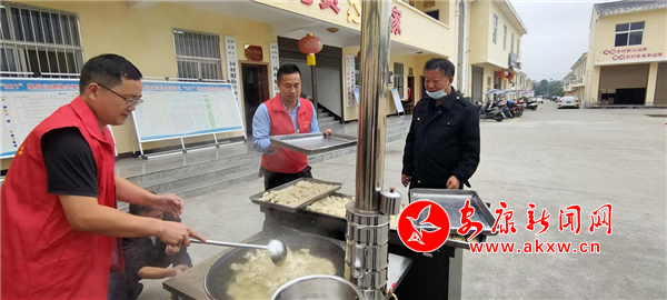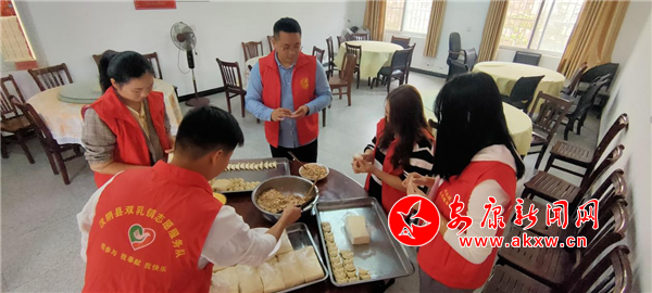 一大早,三同村和玉河村黨支部黨員干部就開始了緊張有序準(zhǔn)備工作,村部廣場上,擺起支起了一口大鍋。切菜剁肉,剁餡包餃子,收拾餐桌......忙得不亦樂乎,鉚足了勁要讓老人過一個(gè)難忘的重陽佳節(jié)。對于行動(dòng)不便和年齡大的老人,身穿紅馬甲的志愿者甚至上門用車把老人們送到村部。