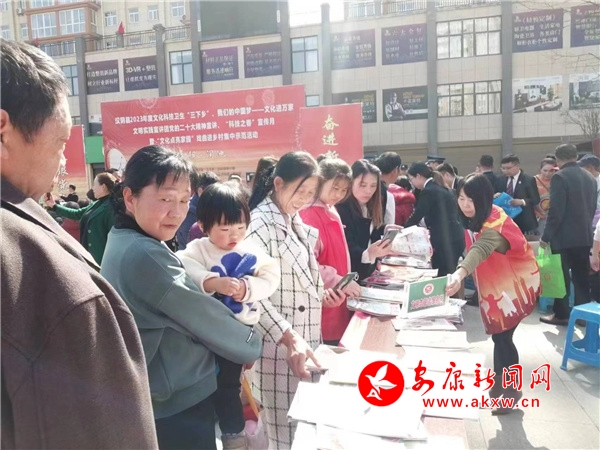 3月3日下午,縣圖書館在澗池鎮(zhèn)集鎮(zhèn)廣場參加了漢陰縣2023年度文化科技衛(wèi)生“三下鄉(xiāng)”、我們的中國夢----文化進萬家、文明實踐宣講團黨的二十大精神宣講、“科技之春”宣傳月節(jié)“文化點亮家園”戲曲進鄉(xiāng)村集中示范活動?h直多家單位組織參加了此次活動;顒蝇F(xiàn)場氣氛熱烈,節(jié)目內(nèi)容豐富、形式多樣,有歡快的歌舞、詼諧的小品,醫(yī)務(wù)工作者為廣大村民義診,政法部門等單位為群眾送政策?h圖書館的紅色經(jīng)典圖書和科技類、農(nóng)業(yè)類書刊吸引了附近十里八鄉(xiāng)的群眾前來觀看,紛紛挑選符合自己口味的書籍,進行現(xiàn)場閱讀。在送書環(huán)節(jié),市民們爭相登記、咨詢、關(guān)注公眾號,他們把書籍拿到手里,如獲至寶,紛紛表示希望縣圖書館多開展這樣的活動,豐富他們的業(yè)余文化生活。