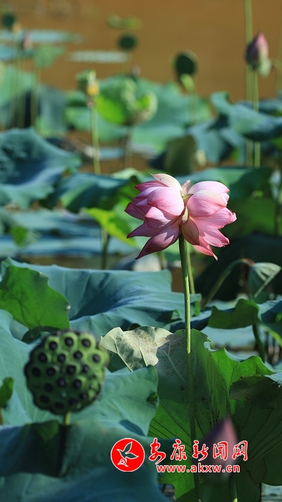 漢陰縣蒲溪鎮(zhèn)芹源農(nóng)莊的荷花自7月初開始就迎來了盛花期。一大片怒放的荷塘在藍(lán)天下鋪陳開去,一朵朵粉紅的荷花在碧綠的荷葉間恣意盛放,而其中就悄然綻放了一株并蒂蓮。