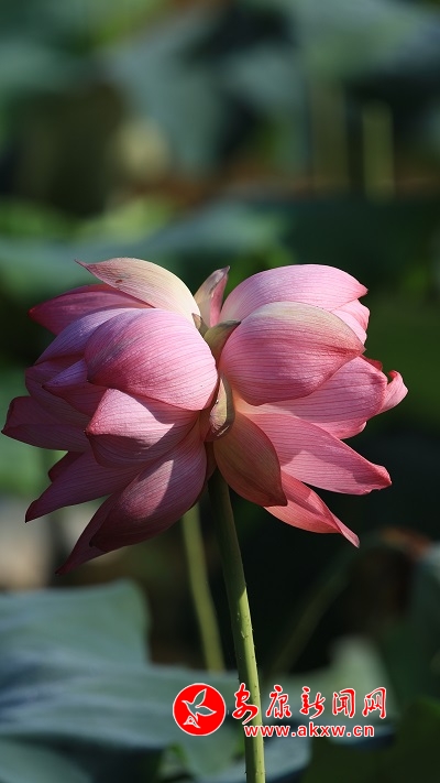 本網(wǎng)訊(通訊員 王建霞 劉東)一枝花莖有兩個(gè)花蕾,可謂可遇不可求。近日,漢陰縣蒲溪鎮(zhèn)芹源農(nóng)莊的荷塘內(nèi)就出現(xiàn)了一朵并蒂蓮,其生成的幾率僅十萬分之一,屬花中珍品。