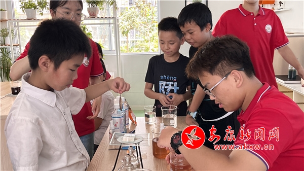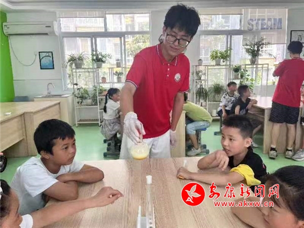 鳳臺(tái)小學(xué)學(xué)生郝錦燃表示,這些大哥哥大姐姐非常認(rèn)真負(fù)責(zé),給我們介紹一些知名的大學(xué),讓我們?cè)鲩L了見識(shí)。其次課間他們會(huì)帶我們打乒乓球、打籃球,帶我們做一些化學(xué)實(shí)驗(yàn),讓我們?cè)鲩L了知識(shí),使我們的暑假過得更有意義。