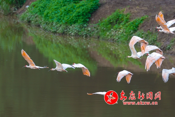 2010年,漢陰縣首次在澗池鎮(zhèn)洞河河畔發(fā)現(xiàn)朱鹮,2013年,朱鹮在漢陰縣雙河口鎮(zhèn)鳳柳村清泥河畔首次繁衍成功。隨著近年來(lái)漢陰縣生態(tài)環(huán)境的持續(xù)改善,先后在觀音河鎮(zhèn)、澗池鎮(zhèn)、蒲溪鎮(zhèn)、鐵佛寺鎮(zhèn)、城關(guān)鎮(zhèn)、雙乳鎮(zhèn)等多地發(fā)現(xiàn)朱鹮的倩影,截至目前,已在漢陰共發(fā)現(xiàn)朱鹮110余只。