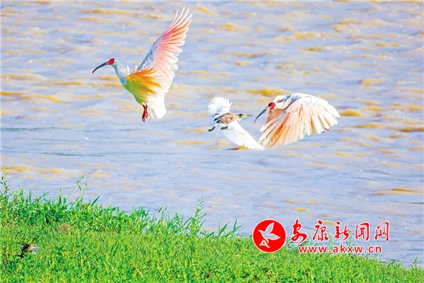 “現(xiàn)在這河壩邊上的朱鹮越來(lái)越多了,以前就能看到幾只,現(xiàn)在經(jīng)常能看到一大群,一二十只在河壩邊上找食吃,它們也不怕人,我們有時(shí)候在河壩邊上種莊稼,逛的時(shí)候都能看到,離我們很近……”作為國(guó)家一級(jí)保護(hù)動(dòng)物,朱鹮被視為國(guó)鳥(niǎo),被譽(yù)為“東方寶石”。近日,有村民在漢陰縣月河河畔發(fā)現(xiàn)20多只朱鹮在河邊漫步覓食的悠閑畫(huà)面,美不勝收。隨著漢陰的生態(tài)不斷向好,不僅野生朱鹮的數(shù)量穩(wěn)步增長(zhǎng),其活動(dòng)范圍亦在不斷擴(kuò)大。