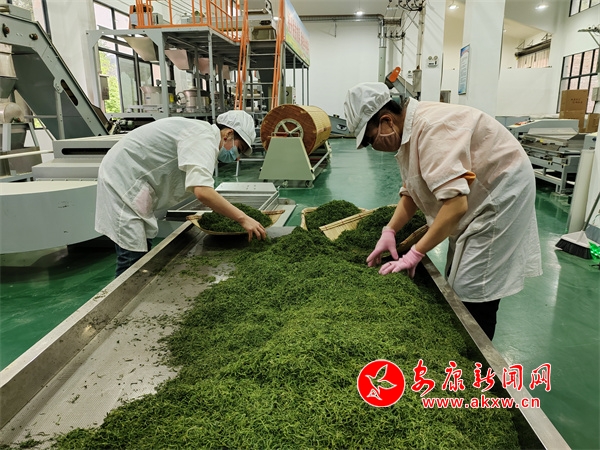 在漩渦區(qū)域加工廠的制茶生產(chǎn)車間內(nèi),鮮嫩的茶葉經(jīng)過殺青、揉捻、干燥、提香等程序,醇香的茶便新鮮出爐。“今年在開采之前,鎮(zhèn)政府面向茶葉產(chǎn)業(yè)合作社負(fù)責(zé)人和技術(shù)骨干組織了一次統(tǒng)一的培訓(xùn),對(duì)采摘手法,采摘標(biāo)準(zhǔn)進(jìn)行了統(tǒng)一的指導(dǎo)培訓(xùn),便于我們后面的生產(chǎn)和后期產(chǎn)品的把控。”茶廠負(fù)責(zé)人馮衛(wèi)平說。