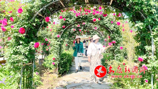 4月下旬是君科玫瑰園盛花期,13萬枝玫瑰迎風綻放,俏立枝頭,迎風起舞,向游客展露迷人的笑臉和多情的眼眸。漫步在玫瑰花海中,蝶飛蜂舞,沁人心脾的玫瑰花香撲鼻而來,花香彌漫,令人陶醉。放眼望去,藍天白云之下,各種嬌艷的玫瑰在層層疊疊的綠葉之中搖曳生姿,顯得格外嬌美,楚楚動人,不少游客身著漂亮衣裙在花海之中拍照打卡,微風拂來,花枝搖曳,勾畫出一幅美麗的春日畫卷。