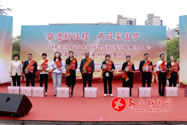 本網(wǎng)訊(通訊員 賀珍珍 熊樂 張欣欣)為進(jìn)一步弘揚(yáng)家訓(xùn)文化,傳承優(yōu)良家風(fēng),5月9日,由漢陰縣紀(jì)委監(jiān)委、縣委宣傳部主辦,漢陰縣婦聯(lián)、縣文聯(lián)承辦的“奮進(jìn)新征程 共筑中國夢”——“萬條家訓(xùn)進(jìn)萬家”家風(fēng)故事分享暨最美家庭、好婆婆、好媳婦表揚(yáng)大會(huì)在漢陰縣鳳凰廣場舉行。