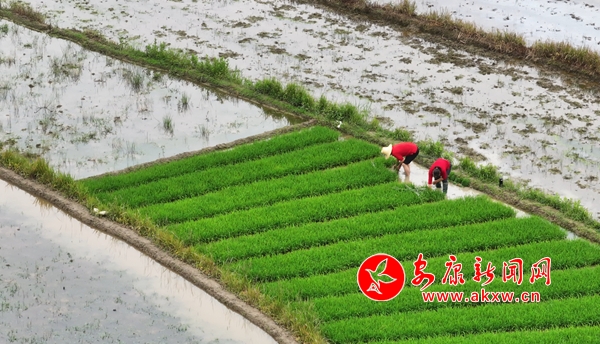 在景區(qū)的核心區(qū)域堰坪村,一行行秧苗整齊排列,綠油油的稻苗奮然向上,舒展身姿,長勢喜人,微風(fēng)拂過,此起彼伏,滿目翠綠。隨處可見農(nóng)民們正挽起袖子、卷起褲腿,有的負(fù)責(zé)在田間里運苗,有的在田間低著頭、弓著腰,將嫩綠的秧苗插至田間,為農(nóng)田“換新衣”,披上新“綠裝”。