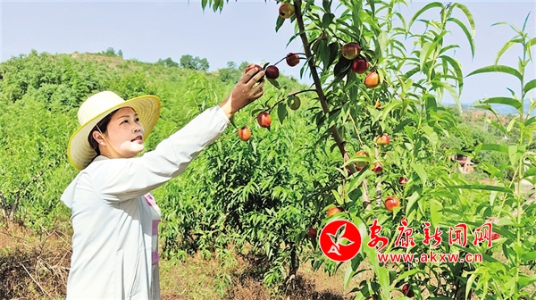 走進(jìn)蔣家溝,大片桃林綠意盎然,一個(gè)個(gè)鮮紅飽滿的油桃和紅桃掛滿枝頭,濃郁的果香撲鼻而來,“桃”醉人心。果農(nóng)們提著籃子穿梭其間忙著采摘,豐收的喜悅溢于言表。“今年的桃子產(chǎn)量比去年高,品種多、品質(zhì)也有保障,剛上市就收了三個(gè)大訂單,大家得抓緊把貨備齊……”前進(jìn)村產(chǎn)業(yè)發(fā)展負(fù)責(zé)人楊啟軍一邊分揀果子,一邊和入園務(wù)工的群眾交流。