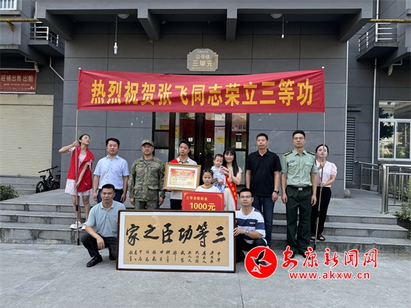 一張喜報(bào)、一枚“三等功”軍功章、一個(gè)立功牌匾、1000元的慰問(wèn)金。在熱烈喜慶的氛圍中,一份份“喜悅”送到軍人軍屬家門(mén)口,對(duì)營(yíng)造支持國(guó)防事業(yè)、尊重關(guān)愛(ài)功臣模范的社會(huì)氛圍意義非凡,左鄰右舍聞?dòng)嵍鴣?lái)、交口稱贊。慰問(wèn)組與立功受獎(jiǎng)軍人家屬進(jìn)行了親切交談,感謝他們?yōu)閲?guó)家和軍隊(duì)輸送了優(yōu)秀人才,并詳細(xì)了解家里生產(chǎn)生活情況,希望他們繼續(xù)支持孩子在部隊(duì)安心服役,為國(guó)防和軍隊(duì)現(xiàn)代化建設(shè)做出更大貢獻(xiàn)。