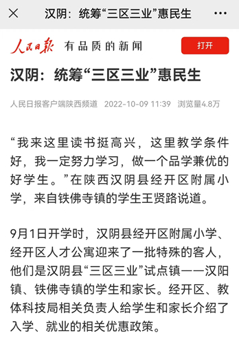2022年7月,漢陰縣制定出臺了《統(tǒng)籌“三區(qū)三業(yè)”推進(jìn)教育優(yōu)質(zhì)均衡發(fā)展試點(diǎn)方案》,探索推行學(xué)區(qū)園區(qū)社區(qū)聯(lián)動工作機(jī)制,全力實(shí)現(xiàn)保障學(xué)生學(xué)業(yè)、家長安心就業(yè)、家庭安居樂業(yè)(簡稱“三區(qū)三業(yè)”),保障民生需求,促進(jìn)全縣教育、就業(yè)、安居高質(zhì)量發(fā)展。該試點(diǎn)方案明確了加強(qiáng)學(xué)區(qū)、園區(qū)、社區(qū)建設(shè)的9條措施。