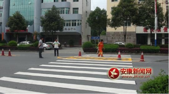 漢陰:給城區(qū)道路標示線換新裝
