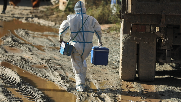 “遇到最大的困難是時常都是路況不好,路上常常塵土飛揚、霧天視線不清,尤其是遇到下雨天的陡坡泥濘路面最擔(dān)心,擔(dān)心路不好走的危險,更擔(dān)心耽誤了測核酸的進程。有時候要反復(fù)試幾十遍,才好不容易上去,這樣就會耽擱采樣時間,我們內(nèi)心也很焦急,但是沒辦法,因為山路不好走,路途常常都是幾十公里,就這樣每天幾乎都是從天明到黑夜。”