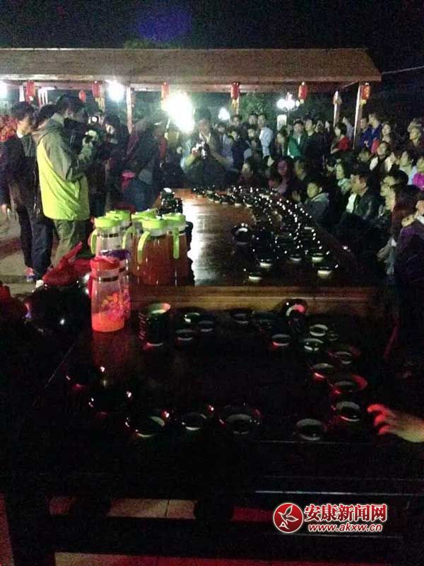 來自西安、安康、漢中、重慶城口等地的客人,分座幾個(gè)吊腳樓,圍著八仙桌,一邊欣賞著四面竹木墻上掛著的蓑衣、斗笠、紅辣椒串、玉米棒子等物件,一邊交流著巴山地區(qū)的特色物產(chǎn)、民俗風(fēng)情。在主人的熱情招呼下,不一會(huì)兒功夫,客人們面前已經(jīng)擺上了一摞摞“巴人酒具”土窯碗,盛裝著各色“巴人美食”的陶碗、陶缽、陶盤、吊罐也陸續(xù)端了上來。
