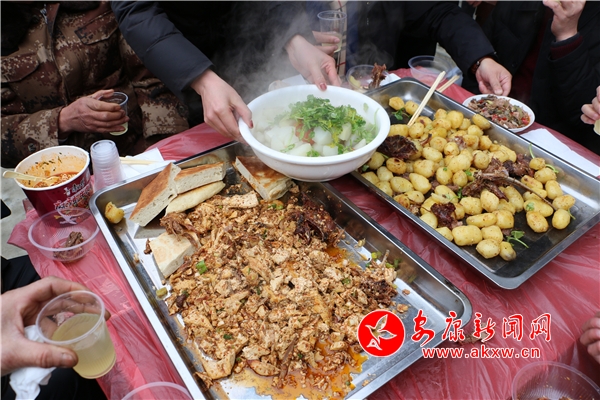 一場(chǎng)文化盛宴后,團(tuán)圓飯成了濃濃年味里最溫暖的守候。在烹飪師傅的精心烘烤下,帶有地方特色的烤全羊美食新鮮出爐,金黃酥脆的羊肉散發(fā)出誘人的香味。三陽開泰全羊宴,把酒言歡敘豐年,村民們圍聚在一起大快朵頤,暢飲美酒,拉家常話團(tuán)圓,在熙熙攘攘的人群中,在陣陣歡聲笑語里,年味在心頭漫開。