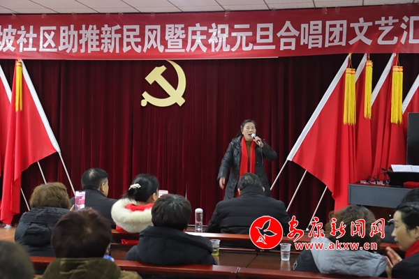 歡聲鬧歌舞,喜慶迎元旦。在2020年元旦即將到來之際,為進一步豐富社區(qū)居民的精神文化生活,弘揚中華優(yōu)秀傳統文化,倡導健康、文明生活方式,營造歡樂喜慶、文明祥和的節(jié)日氛圍,展現社區(qū)居民的良好風貌,12月25日下午,嵐皋縣城關鎮(zhèn)西坡社區(qū)舉辦了“助推新民風暨慶元旦”文藝匯演活動。演出內容豐富多彩,現場不時發(fā)出熱烈的掌聲和喝彩聲,歡快的舞蹈,優(yōu)美的旋律,嘹亮的歌聲,盡情地展現了社區(qū)居民朝氣蓬勃、積極向上的精神風貌。(通訊員 廖霖 文/圖)