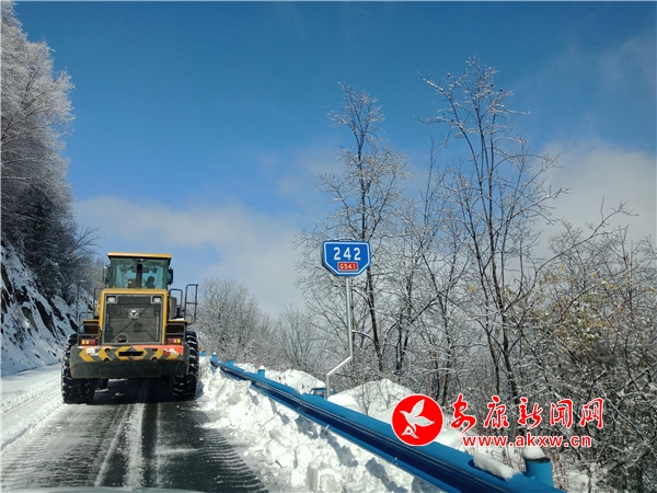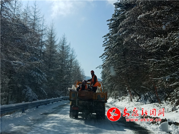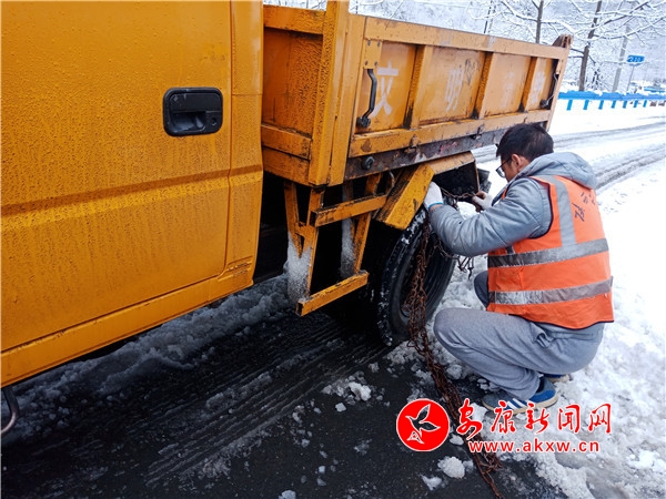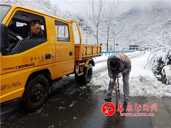 2020年1月7日嵐皋公路段職工在國(guó)道541線平利縣八仙真化龍山路段清理路面積雪。