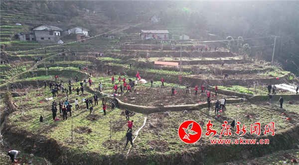 本網(wǎng)訊(通訊員 張文楓 陳鈞偉 廖垚 )3月11日,安康市嵐皋縣干部群眾自帶工具前往四季鎮(zhèn)開展“建設宜居生態(tài)嵐皋 打造和諧幸福家園”為主題的義務植樹活動,在四季鎮(zhèn)月壩4村植樹現(xiàn)場,干部群眾在各自分配的綠化區(qū)域分散作業(yè),并按照技術要求挖土、栽樹、澆水、蓋土,大伙熱情高漲、干勁十足。為確保疫情防控安全,所有參加義務植樹的人員一律嚴格進行體溫檢測和登記,并合理劃分工作區(qū)域,進行分散作業(yè)。本次義務植樹活動與旅游觀光采摘園打造相結合,引領全民廣泛參與植樹造林活動,在旅游景區(qū)沿線的四季鎮(zhèn)月壩村共栽植了車厘子樹苗5000余株,綠化面積達200余畝。