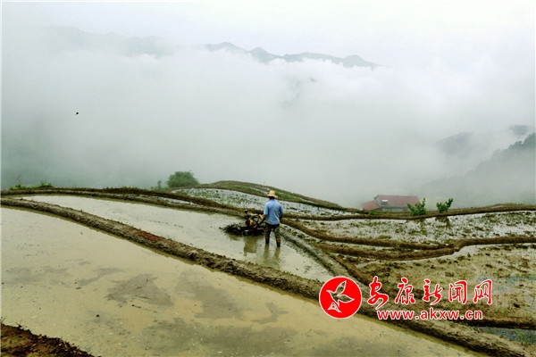 本網(wǎng)訊(通訊員 廖霖 馬桂芳)五月立夏農(nóng)耕忙,插下秧的梯田田水如鏡,波光粼粼;青山、白霧、梯田、鮮花,寧靜和諧的田園美景里,錯落有致、形態(tài)各異的梯田與朝霞和農(nóng)民忙碌勞作的身影一起構(gòu)成了一幅美麗的畫卷,吸引不少游客和攝影愛好者前來觀賞拍攝。