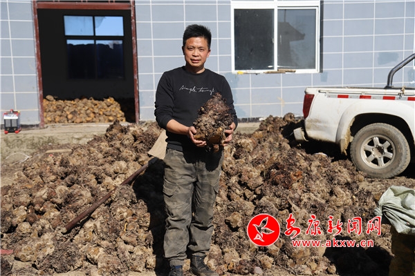 該公司經(jīng)理張乾運告訴筆者,今年1000畝大黃他們隨手挖出一株大黃進行稱重,重量達到了10余斤,長勢十分喜人。湖北、成都藥材商人上門收購,目前,已銷售鮮大黃400余噸,產(chǎn)值達到100余萬元。張乾運看著豐碩的收成和一摞摞的訂單,抱著10余斤的大黃喜悅溢于言表。gAQ安康新聞網(wǎng)