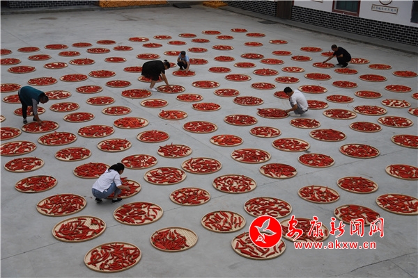 秋天的農(nóng)家,喜在一家老小,樂在農(nóng)家院落,醉在一片廣闊天地。那紅辣椒映紅了小院,點燃了村姑村嫂們的激情。
