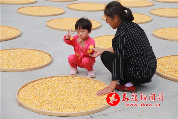 歲歲年年曬豐收,曬出的是滿滿的幸福、濃濃的鄉(xiāng)愁。農(nóng)家院落一排排簸箕鋪滿了紅紅的辣椒、金黃玉米,一張張“曬秋”圖,儼然成了一幅幸福美好的秋收畫卷。