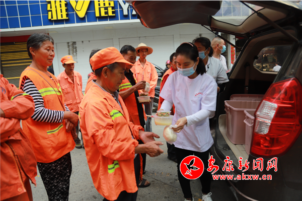 一份家常菜 ,情暖環(huán)衛(wèi)工人心。連日來(lái),縣城的環(huán)衛(wèi)工每天清晨8時(shí)就會(huì)聚集在郵電小區(qū)門口,小河口、肖家壩三個(gè)點(diǎn)每天向城內(nèi)環(huán)衛(wèi)工人免費(fèi)定時(shí)定點(diǎn)提供52份早餐。筆者看到,一群身穿著環(huán)衛(wèi)服的環(huán)衛(wèi)工人正在品嘗美食,他們臉上洋溢著喜悅的神情,伴著早餐那騰騰的熱氣,已成為嵐皋這座小城中一道靚麗的風(fēng)景。