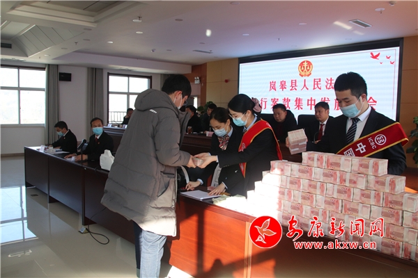 本網(wǎng)訊(通訊員 葉文玉)12月20日,嵐皋縣法院舉行執(zhí)行案款集中發(fā)放大會(huì),為62名申請人及其背后的數(shù)百名農(nóng)民工送去3252萬元。