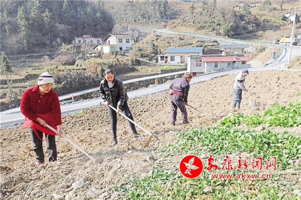 2月17日,是個(gè)好天氣,官元鎮(zhèn)陳耳村的30多位村民在村委會副主任鐘光乾帶領(lǐng)下,帶上方面便、火腿腸等食品,來到火山溝山林地,揮鋤挖坑,為魔芋下種早做準(zhǔn)備。