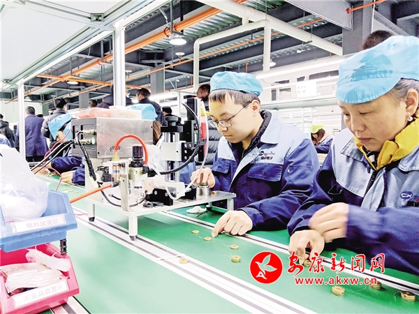嵐皋縣電子廠內(nèi)員工正在流水線上工作