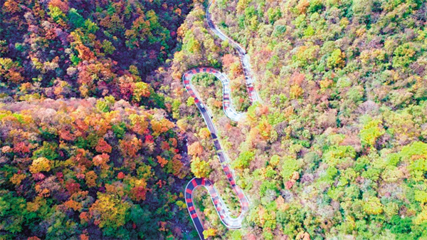 車輛穿行在如夢如幻的旅游路中。