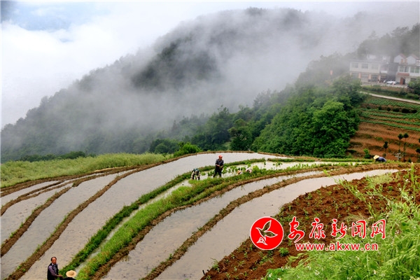 嵐皋:山村梯田美 農夫插秧忙