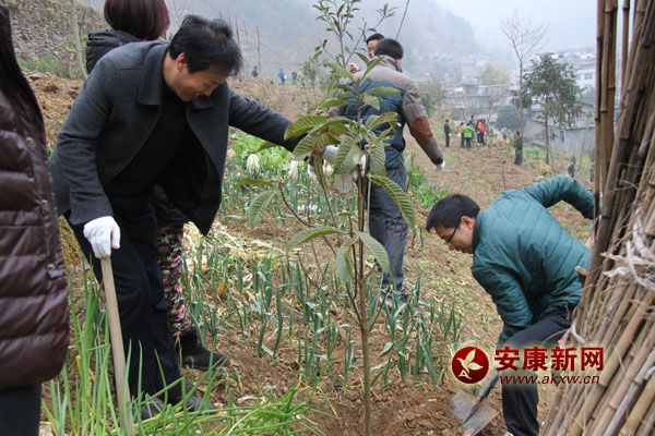 3月11日,嵐皋縣直機關(guān)300余人參加義務(wù)植樹活動,當(dāng)天栽植枇杷樹1400棵。該縣計劃今年綠化造林6.2萬畝,其中春季造林達到3萬畝以上,實現(xiàn)過半目標(biāo)。周湑堯 攝……