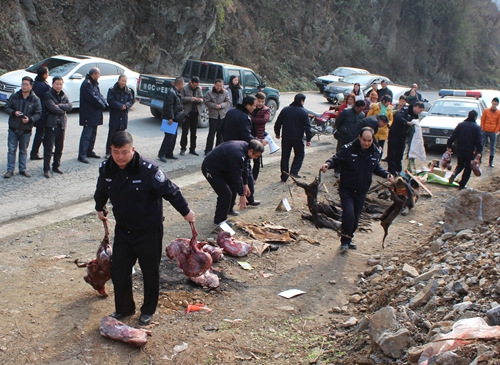 1月29日,嵐皋縣召開銷毀收繳野生動物產(chǎn)品現(xiàn)場會,依法公開銷毀一批收繳的野生動物產(chǎn)品和獵捕工具?h工商、食品、畜牧等部門負(fù)責(zé)人對銷毀活動進(jìn)行全程監(jiān)督,確!